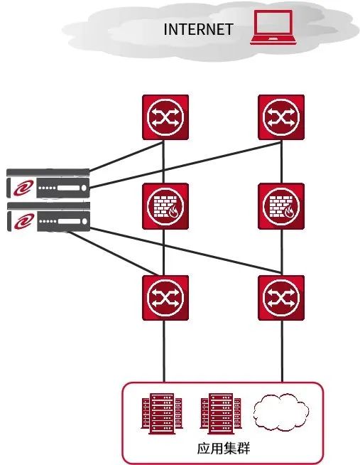 在上图的组网结构中,我们可以直观看到,AG庄闲通明湖应用交付控制器设备可以很容易的接入在现有网络环境中,无需对原有网络配置做任何改动,只需在AG庄闲通明湖应用交付控制器设备与核心交换机间配置相应的端口、VLAN及IP地址就可以完成设备互连,即可实现相关负载均衡技术,同时可以在接入交换机或核心交换机上对服务器进行横向扩展。